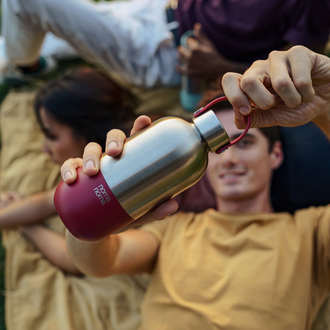 The noma noma This stainless steel water bottle combines stylish design, first-class functionality, and sustainability in one. Perfect for your active and conscious lifestyle, this thermos keeps your drinks hot for up to 16 hours and ice-cold for up to 26 hours – ideal for coffee, tea, or sparkling water on the go.