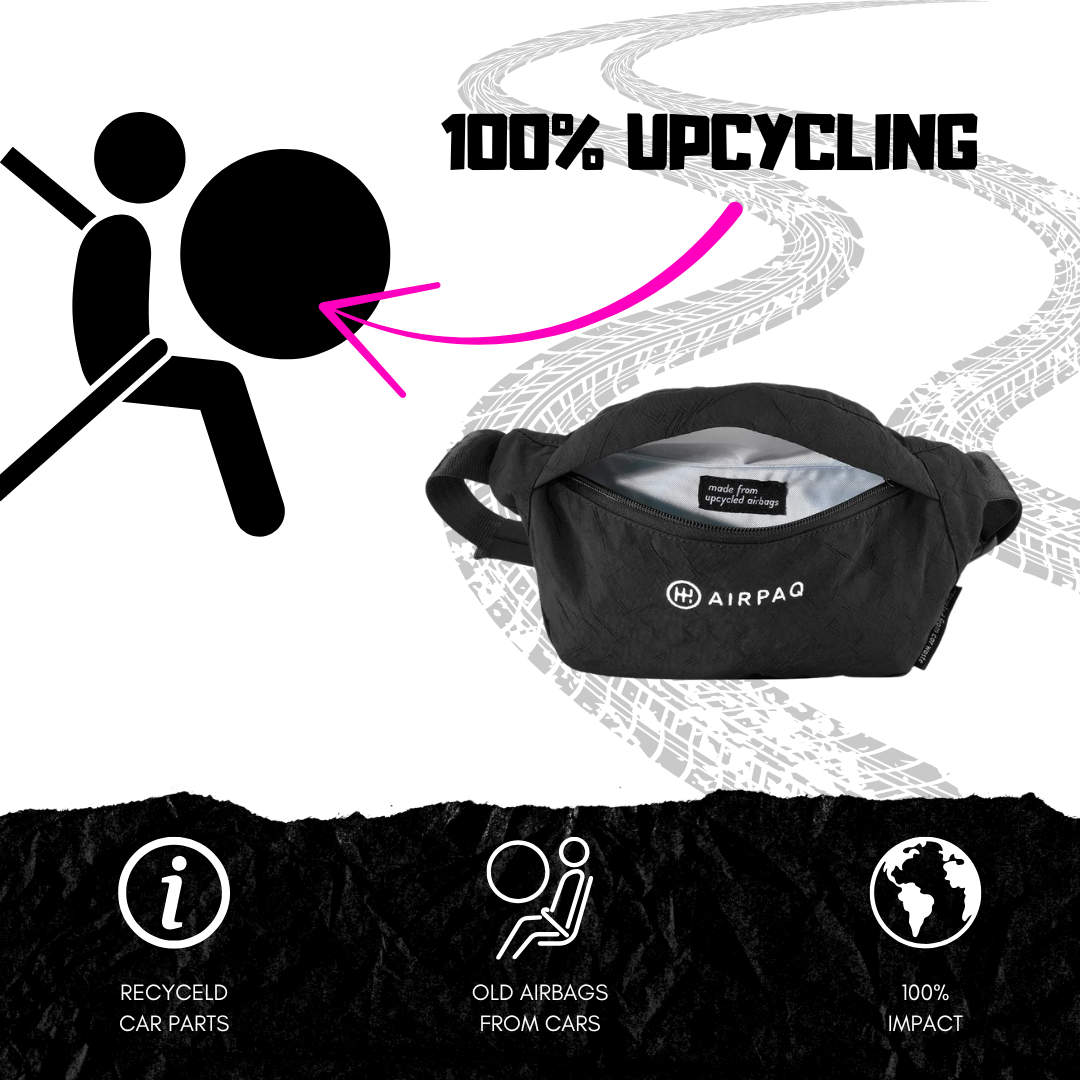 Ein Statement für Stadt, Festival und Alltag: Die Airpaq Hip Baq ist mehr als eine Bauchtasche. Sie ist dein smarter Begleiter – upgecycelt, urban stylish, und fair produziert.