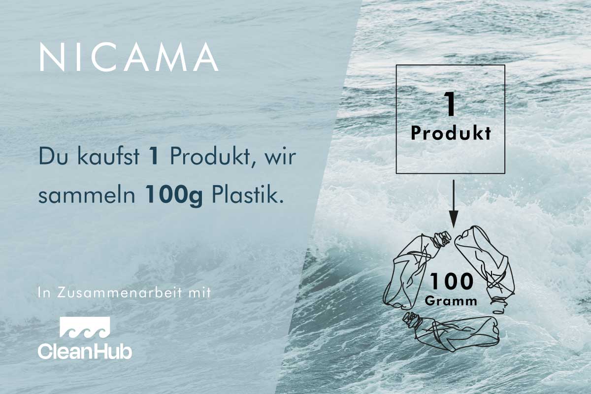 Mit jedem Kauf dieses Produkts werden 100 g Plastik in bedrohten Küstenregionen eingespart bzw. aus der Umwelt entfernt – in Zusammenarbeit mit CleanHub.