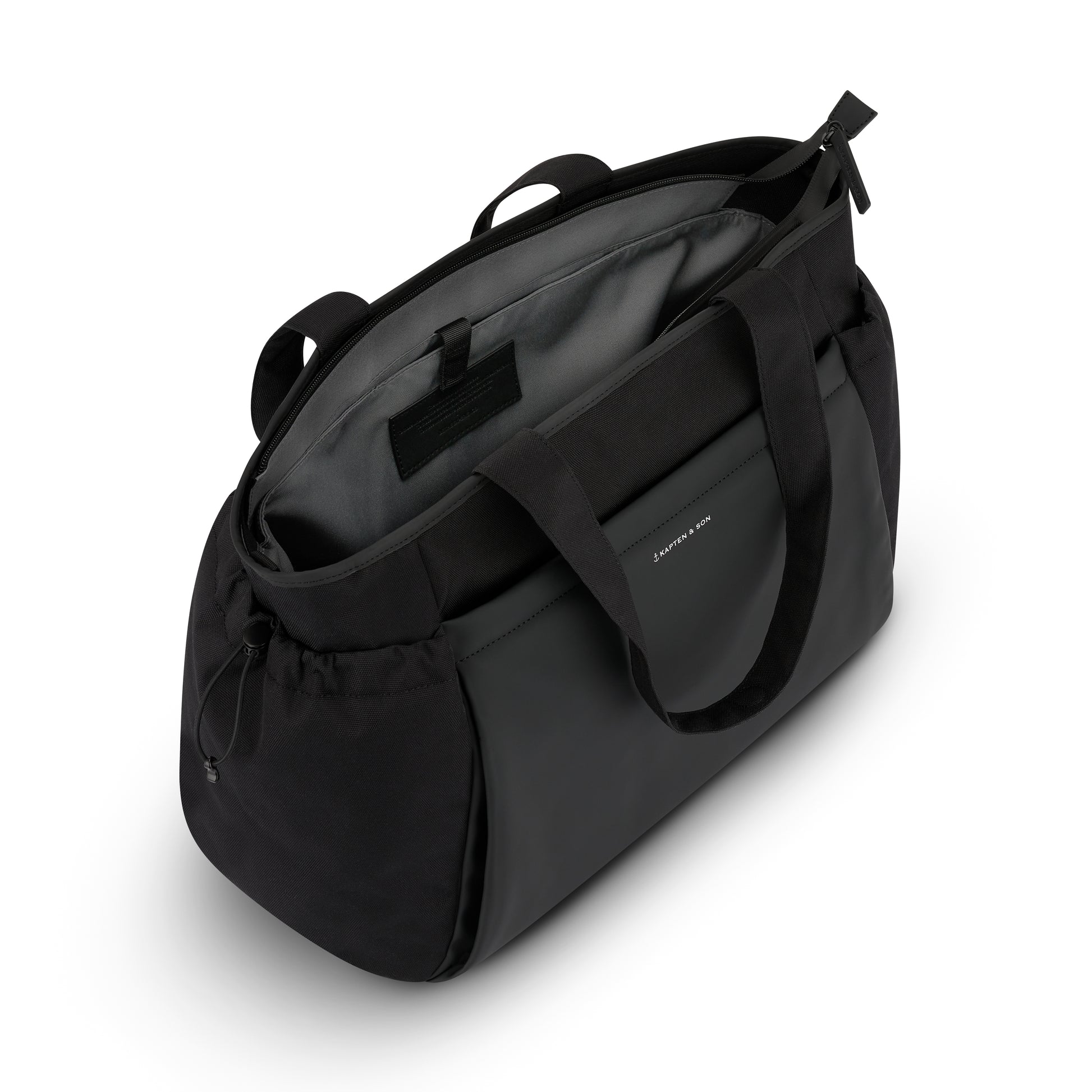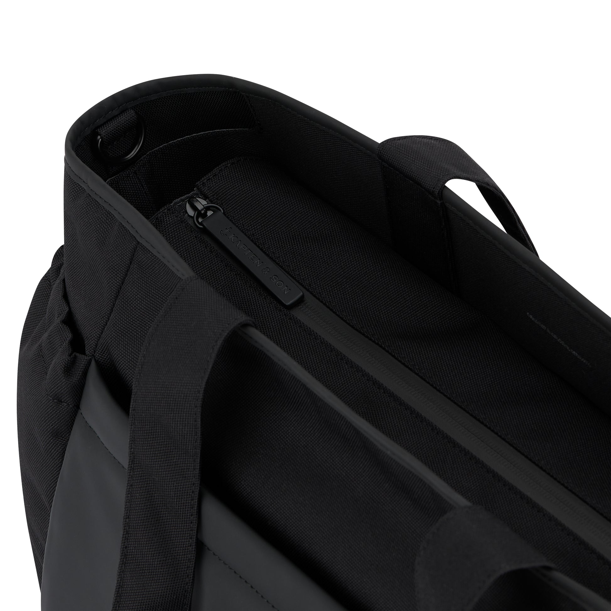 Außen- und Innenmaterial bestehen aus recyceltem PET mit technischem Finish – wasserabweisend und langlebig.