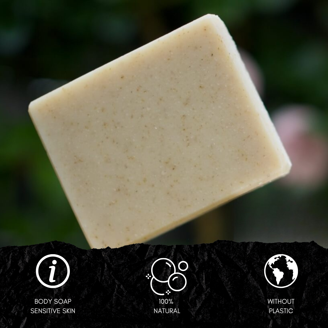 Diese Seife kommt ohne Duft, aber mit vollem Pflegefaktor. Haferflocken peelen sanft, beruhigen gestresste Haut und machen sie geschmeidig wie frisch eingecremt. Ideal für empfindliche Haut und alle, die auf alles Überflüssige pfeifen.